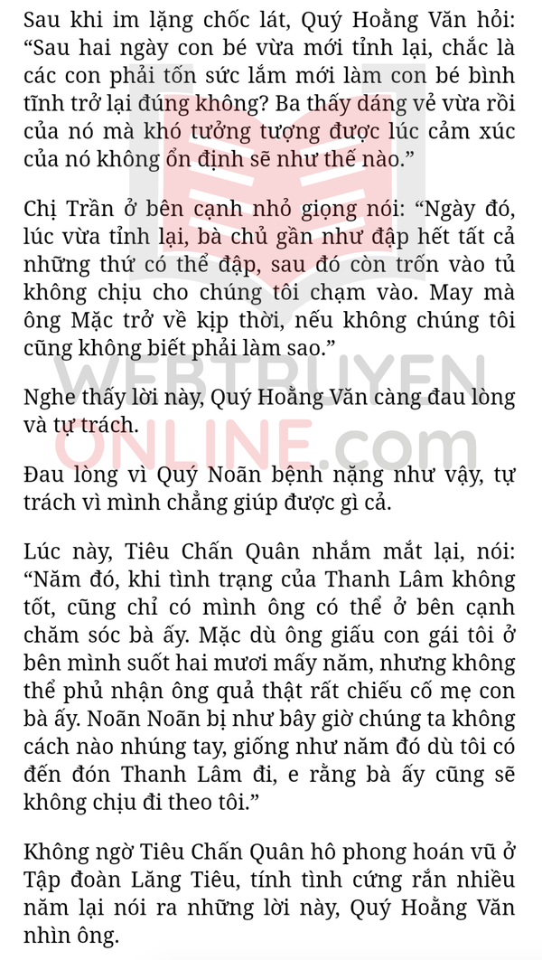 Quý Hoằng Văn thở dài: “Ba chỉ đang nghĩ, giờ Quý Noãn bệnh thế này, lại chỉ chấp nhận một mình con, người làm cha như ba nhiều năm rồi cuối cùng vẫn là kẻ thất bại.”